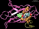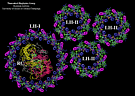 All of the molecular graphics on this page were made with VMD via its "snapshot" feature, or through exported renderings to external ray tracers such as Tachyon, POV-Ray, Raster3D, and others. If you have an image you would like to contribute to the gallery, please email vmd@ks.uiuc.edu with instructions for downloading your image or send as an attachment. Providing us with a brief description of the image and an optional URL would allow us to make a link to to your web site and our visitors would be able learn more about your research. All images in our gallery are copyrighted by their respective authors. To make a reproduction any of the images you would need to contact the original authors for permission.