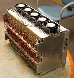 Photo of the homemade supercomputer Klaus Schulten transported in a back pack.